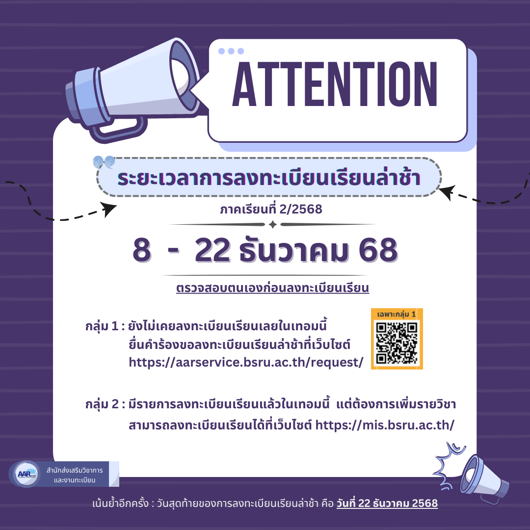 | | ประกาศโดย สำนักส่งเสริมวิชาการและงานทะเบียน วันที่ประกาศ 21 พฤศจิกายน 2568 |